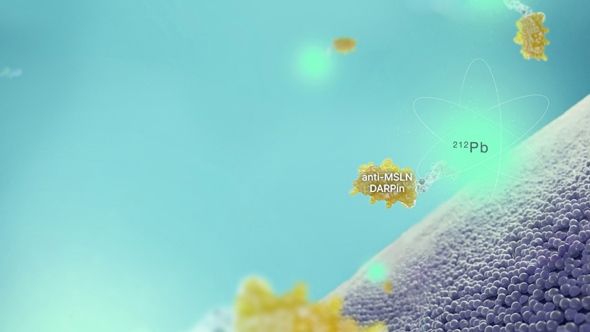 MP0726 is a radiopharmaceutical delivering the potent alpha-emitting therapeutic isotope 212Pb to mesothelin (MSLN) expressing tumors. MSLN is a tumor target highly expressed in patients with ovarian cancer (>80% prevalence), and its expression is maintained in metastases. Molecular Partners has designed DARPins which selectively bind to a MSLN part proximal to the target cell membrane to avoid impact from high shedding, a potential challenge for the development of therapeutics against MSLN.